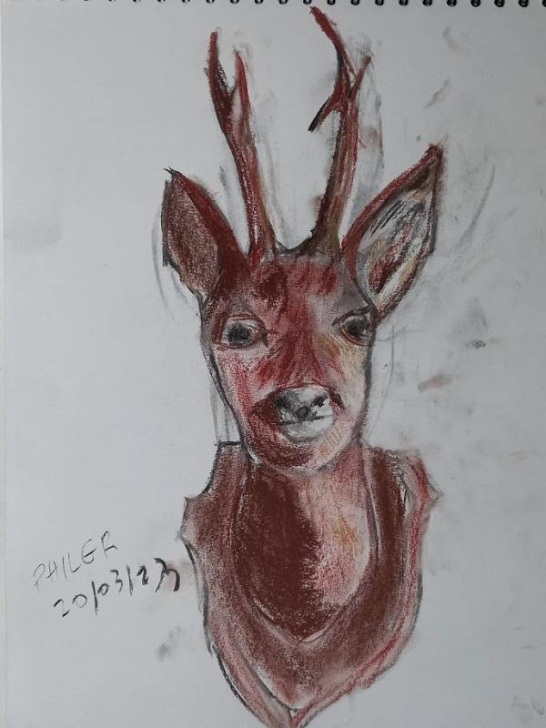 20 mars: cerf, lièvre et chevreuil au fusain et à la sanguine