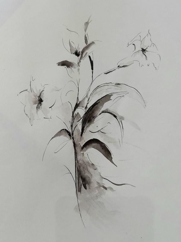 15 mai : travail à l'encre de chine sur motif floral